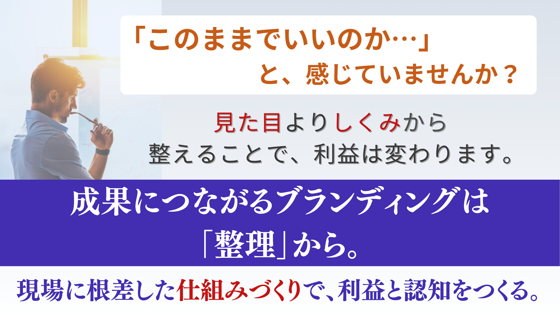 「値下げや広告頼みで利益が残らない」状態から抜け出し、 適正な価格で選ばれる体質へと整えます。